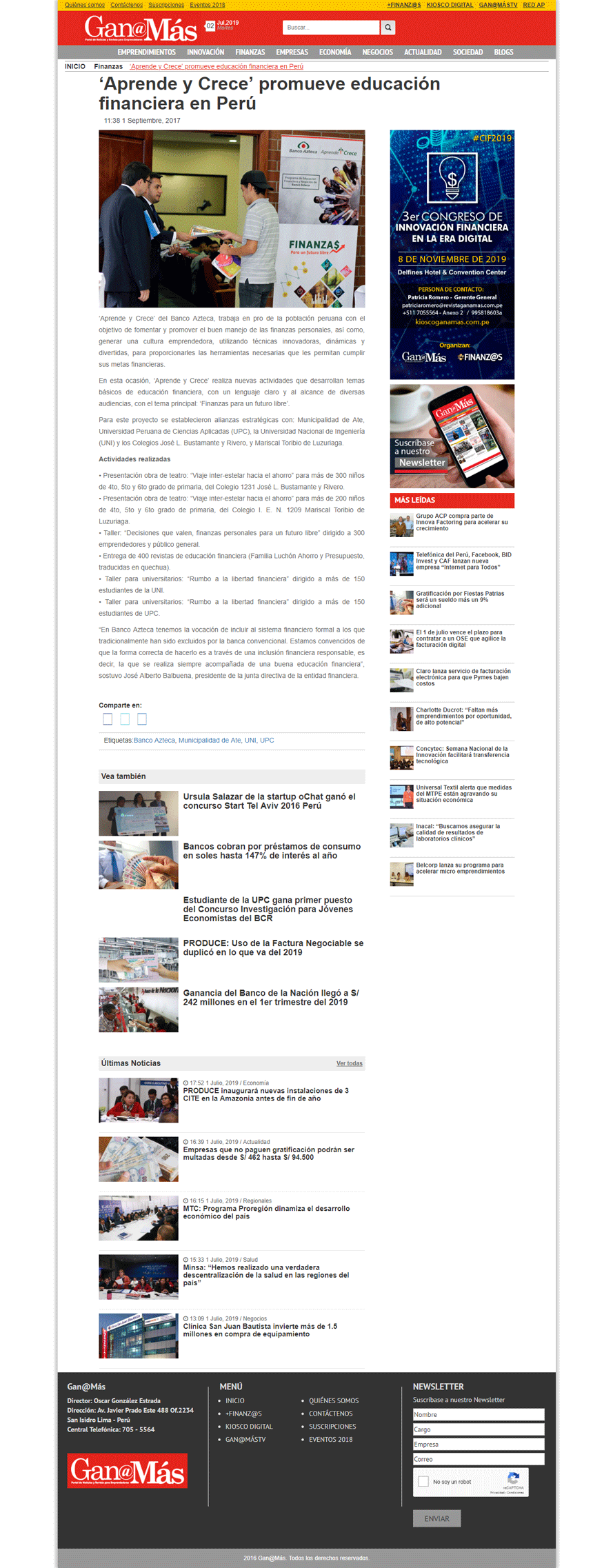 It is a Mexican bank founded in 2002 with a presence in Mexico, Panama, Guatemala, Honduras, El Salvador and Peru. Banco Azteca presents “Learn and Grow” the financial and business education program that aims to promote and instill the use and good management of personal finances, promoting an entrepreneurial culture through advice and tools to do business.